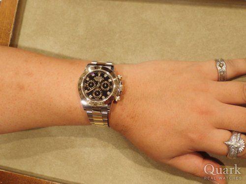 H様 この度はクォーク仙台店をご利用くださいまして誠にありがとうございます。また、お褒めのお言葉を頂戴しまして大変恐縮でございます。はじめてH様とお電話でお話させて頂いた時から、とても素敵なお人柄が伝わって参りましたので、お会いできてとても嬉しかったです! 「Ref.116503G デイトナ」は、ゴールドならではの迫力とステンレスのタフな部分を兼ね備えた素晴らしいモデルです。また、ダイヤモンドを配したダイヤルがさらに高級感を魅力的に演出してくれます。腕元にとてもお似合いでございましたので、末長くご愛用頂けることと存じます。気になることやご不明点がございましたら、お気軽にお申し付けくださいませ。どうぞよろしくお願いいたします。