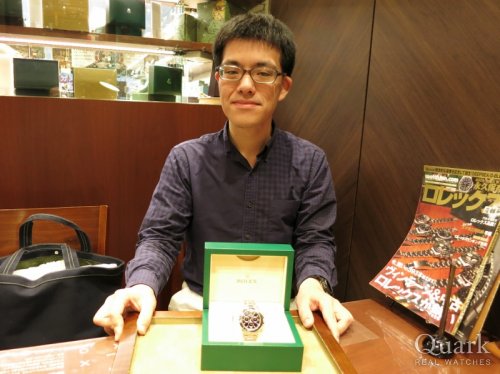M様 この度はクォーク仙台店をご利用くださいまして誠にありがとうございます。テレビでみたことある光景、そのままでした(笑)。ヨットマスターはプラチナが使われており、そのデザイン性は他のモデルとは違った印象でお楽しみ頂けるかと存じます。ぜひたくさんの場所に連れて行ってあげてください。そして思う存分自慢してください♪ご愛用頂く上でご不明点などございましたらお気軽にお申し付けくださいませ。T様という素晴らしいロレックスオーナー様がお近くにいらっしゃいますので、心配なことはないかと存じますが(笑)。ご一緒にお越しくださいましたT様へも改めて御礼申し上げます。T様の最高のご説明に私も聞き入ってしまいました。店頭にてサイズ調整、ブレス洗浄を無料で承っておりますので、ぜひご利用くださいませ。これから皆様でロレックストークで盛り上がってください!!それでは今後とも末長いお付き合いの程よろしくお願い申し上げます。