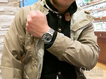 E様 この度はクォーク仙台店をご利用くださいまして誠にありがとうございます。バッチリお似合いですね!色や見た目が特徴的な1本ですので、既にお持ちの他のモデルと使い分けが出来る点が大変魅力でございます。E様の今後のロレックス・ライフが楽しみでございます。これからお引越しされましても、近くのクォークにてアフターメンテナンス等承らせて頂きますので、お気軽にお申し付けくださいませ。末長いお付き合いの程、宜しくお願い申し上げます。クォーク仙台店 店長 佐野