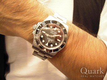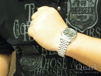前からロレックスを1つ欲しいと思っており、インターネットでクォークさんのHPを見てお店に行きました。 最初はターノグラフを見に行ったのですが、他のモデルと色々見て比較しているうちに旧型サブマリーナーのノンデイトのすっきりとしたシンプルなデザインに惹かれ、購入に至りました。 腕の装着感も良く、大変気に入っています。