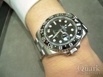 スポーツモデルで何か1本考えていました。 ロレックスカラーであるグリーンの24時間針がオシャレな GMTマスターIIが良いと思いお店に足を運びました。 サブマリーナーも考えましたがスーツにはちょっと合わないかなぁ・・と。 セラミックベゼルの高級感、オンオフ両方使えるモデルということが 決め手となりました!