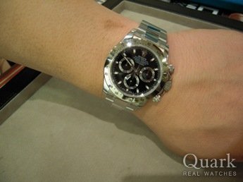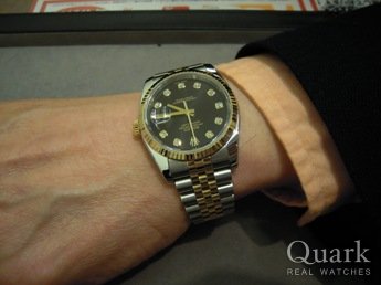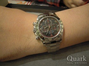 シャンパン文字盤とブラック文字盤で悩みました。クォークさんのHPにこのモデルが 紹介されていて『存在感』、『インパクト』という言葉が印象的でした。実際に実物を見て、 Ref.116233Gブラック文字盤に決めました!