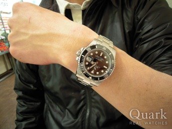 ディープシーにするか新型サブマリーナーのコンビモデルにするか悩みました。 実際に着け比べてみて、サブマリーナーのデザインの美しさ、腕へのフィット感が気に 入ったので購入を決めました。