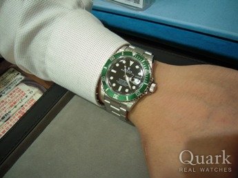 GMTマスター2かグリーンサブでかなり悩みました。しかし普段からガッツリ使うことを考えて サテン仕上げの方が良いと思いましたし、実際に試着してみてグリーンサブの魅了にひかれた ので決めました!
