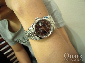 エクスプローラー1とデイトジャストで悩みました。実際に試着をしてみてデイトジャストの 高級感、デザイン性が決め手となりました。新型ブレスの王冠マークの留め金も魅力的でした。 円高の影響もあり新品なのに安いということ、それに加えてクォークさんのメンテナンス体制も 購入の後押しとなりました!