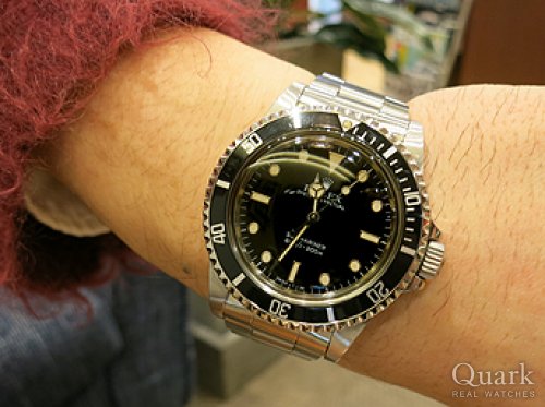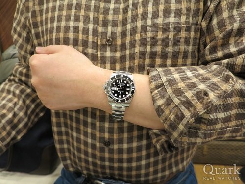 以前から欲しいと思っており、先日クォークさんのホームページで中古品の入荷情報があり、見てみようと思っていましたが、すぐに売り切れになり諦めておりました。今日お店に立ち寄り、新しく刻印入りのグリーンサブの入荷した物があり即決いたしました。現在、GMTも持っており、いつかエクスプローラーIも手に入れて陸海空と3本所有したです。