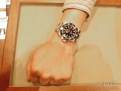 K様 この度はクォーク名古屋店をご利用頂き、誠にありがとう御座います。お選び頂いたサブマリーナー コンビモデルは、ステンレスと違った華やかなさのあるゴージャスさが魅力的です。ブラックとイエローゴールドとの組み合わせが、一層高級感を醸し出しますね。個人的にもK様の雰囲気に抜群に似合っておりましたので、このモデルしかないと感じました!また嬉しそうな表情が印象的で、私自身もご担当に携われ、嬉しく感じました。素敵なお写真まで頂き、ありがとう御座います!今後のサポートに関しても、私が精一杯努めさせて頂きますので、ご遠慮無くご相談下さい。また栄にお立ち寄りの際は、ブレス洗浄を兼ねて遊びにいらして下さい。またK様にお会い出来る日を楽しみにしております。