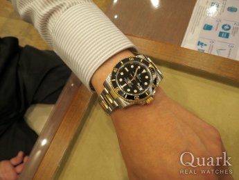 M様、この度はクォークなんば店をご利用頂きまして誠に有難うございました。これまでにお持ちだったモデルと比較してもサブマリーナーコンビモデルは断トツの華やかさだと思います。M様にもとてもよくお似合いでした!なかなか大阪に来る機会はないかと思いますが、お越しの際はなんば店に遊びにいらして下さい。今後も末永くご使用頂けることを願っております。クォークなんば店 佐野