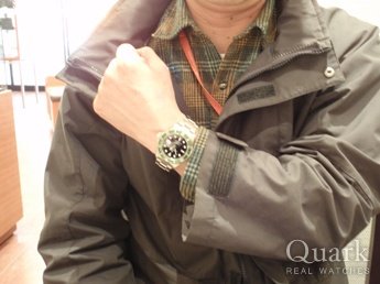 いつも時計を買う時はクォークさんと決めていますが、新型のサブマリーナーは非常に高級感があり、 ブレスレットも自分で微調整出来る点や、ずっしりとした重みなど、様々な点に背中を押されました。 対応して頂いた副店長の石橋さんに背中を押されたのも、購入への弾みになりました。今回の写真は、以前の購入時に対応して頂いたスタッフの須永さんや、クォークの日にお話しした大村統括と一緒に撮りました。時計を買うなら、親切丁寧なクォークさんをお勧めします。