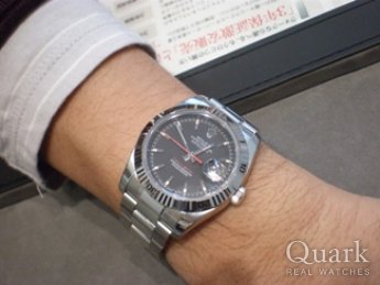ターノグラフは実物を見て一目で気に入りました。サブマリーナーとも迷いましたが、こちらはサイズが大きすぎて・・・。ターノグラフは腕にしっくりくる丁度良いサイズが良かったです。またマット調なブラック文字盤に秒針・日付・表記の色が赤というのもデザイン性が高くて購入の決め手になりました。