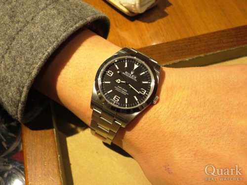 O様 この度は数ある時計店の中からクォーク上野本店をご利用頂き誠にありがとうございます。今回はEXPLORER-Ⅰ Ref.214270のご購入のお手伝いが出来た事、大変嬉しく思います。2010年のバーゼルワールドでモデルチェンジを行い、これまでの36mmから39mmへサイズアップしたエクスプローラーです。また2016年にはダイヤルの3・6・9のインデックス部分がメタル地からクロマライト夜光に変わり視認性が向上しております。日付のないシンプルなデザインが場所を選ばずご使用頂ける為、幅広い年齢層の方から支持を受ける人気モデルです。ご使用頂きしっかりとサポートさせて頂きますので今後、お時計の事で何かございましたらお気軽にご相談下さいませ。宜しくお願いいたします。