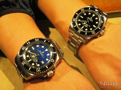 以前から欲しいと思っており、先日クォークさんのホームページで中古品の入荷情報があり、見てみようと思っていましたが、すぐに売り切れになり諦めておりました。今日お店に立ち寄り、新しく刻印入りのグリーンサブの入荷した物があり即決いたしました。現在、GMTも持っており、いつかエクスプローラーIも手に入れて陸海空と3本所有したです。