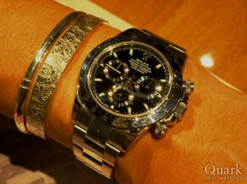 T様 この度はクォーク上野本店へご来店、並びにご利用いただきまして誠にありがとうございます。 今回お選びいただいたDAYTONA Ref.116520も生産終了となった現在でも非常に人気のあるモデルです。 おっしゃる通り現行モデルに比べメタリックなデザインが強く、T様のアクセサリーともマッチしておられ、非常にかっこよかったです! ご使用頂く上で何かご不明な点等ございましたらいつでも青木までお申し付けください。 今後とも宜しくお願い致します。 クォーク上野本店 青木