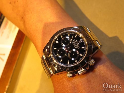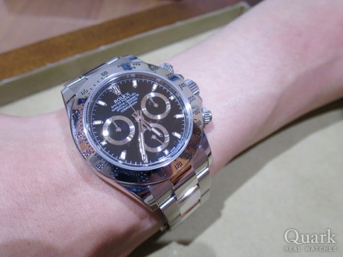 K様 この度はクォーク上野本店をご利用いただき誠にありがとうございます。今回K様にタイミング良くDAYTONAをご案内でき大変嬉しく思っております。お選びいただきましたRef.116520は、新型デイトナの発表から価格が上昇し続けている人気モデルでございます。高級感とステータス性はもちろんのこと、今後の価格の動向も一緒に楽しんでいただければと思います。また、ご使用いただく上で何かご不明な点等がございましたらお気軽にご連絡くださいませ。今後とも末長いお付き合いの程、どうぞ宜しくお願い致します。