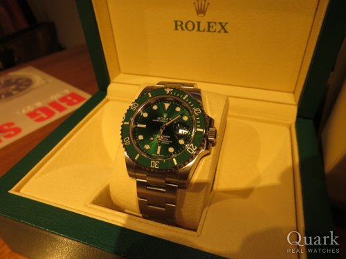S様 この度はクォ―ク上野本店をご利用頂き誠にありがとうございます。今回はサブマリーナー Ref.116610LVのご購入のお手伝いが出来た事、大変嬉しく思います。ロレックスカラーであるグリーンをベゼル・ダイヤルに使用し個性派のダイバーズモデルとして人気が高く、ここ最近は品薄傾向により価格面も高騰しております。現行モデルからはブレスの中央部分が無垢素材になっており堅牢性と高級感がアップしております。ご使用頂き確りとサポートさせて頂きますので何かございましたらお気軽にご相談下さいませ。宜しくお願いいたします。