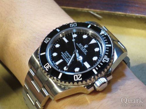 T様 この度は数ある時計店からクォ―ク上野本店をご利用頂き誠にありがとうございます。今回はサブマリーナ―Ref.114060のご購入のお手伝いが出来た事、大変嬉しく思います。歴代のサブマリーナーをほぼそのまま継承しケースはずっしりと分厚くなり剛性を高めたブレスレットを装備するなど進化し続けております。防水性能もデイト付きと同様に300mとなりこれからの季節にピッタリな1本です。ご使用頂き確りとサポートさせて頂きますので何かございましたらお気軽にご相談下さいませ。宜しくお願いいたします。