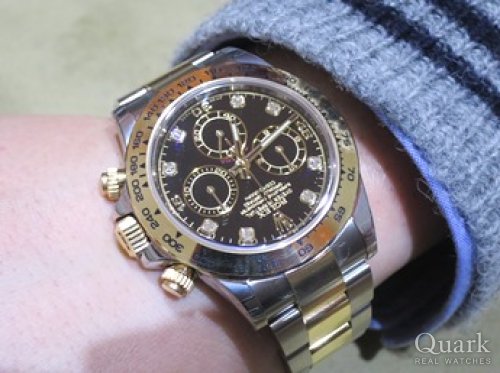 K様 この度はクォーク上野本店をご利用頂き誠に有難うございます。また、数ある店舗の中から上野本店をお選びいただきまして、大変恐縮でございます。お求め頂きましたデイトナの使い心地はいかがでしょうか。ダイヤ付きのモデルは腕元が華やかになりますよね。末永くお使いいただけるよう、サポートさせていただきますので、ご不明な点ご等ざいましたらお気軽にご連絡下さいませ。また、奥様のお時計をお探しの際は、私(寺田)にご相談頂けたら幸いでございます。今後とも、末永いお付き合いの程宜しくお願いいたします。