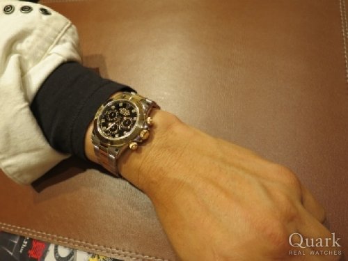 T様 先日は誠に有難う御座いました。お求め頂きましたデイトナの使い心地はいかがでしょうか。出たばかりの新しいデザインのデイトナコンビですし、流通量はまだまだ少ない状況です。私もイエローゴールドのコンビモデルを着けておりますし、ゴールドは本当に綺麗なお色だと思います!末永くお使い頂けますと嬉しいです。度々のご来店有難う御座いました。クォーク梅田店 店長 宮崎