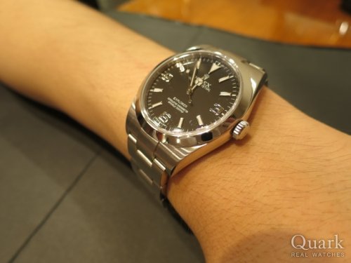 このサイズ感が気に入っています。初めてのロレックスということで、ロングセラーの王道モデルであるエクスプローラーI に決めました。