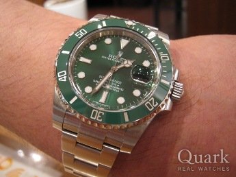 いつもクォーク様にはお世話になっております。 2010年のバーゼルフェアで発表された新型グリーンサブマリーナが入荷すれば連絡を頂くように担当の西川さんにお願いしていた所、やっとこの度入手する事が出来て満足しております。 いつも無理ばかり言って対応して頂き、ありがとうございます。