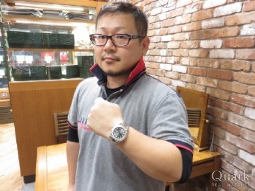 N様 この度はクォーク神戸店をご利用頂き、誠にありがとうございます。お選び頂きましたRef.116622ダークロジウムは、2016年に発表されたばかりの新作です。水色の針とロゴ表記、光沢感のあるグレー文字盤の組み合わせがカッコイイ1本です。N様に大変良く似合っておりましたので、末永くご愛用頂ければ幸いです。ブレスレットの無料洗浄も行なっていますので、お気軽にお申し付け下さいませ。今後とも、クォーク神戸店を何卒宜しくお願い申し上げます。クォーク神戸店 増田