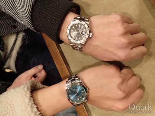 K様 この度はクォーク仙台店をご利用くださいまして誠にありがとうございます。ご案内までお時間をいただくこととなり大変失礼致しました。プラチナの輝きとシックなダークロジウムダイヤル、カッコイイですね~。自慢の1本としていつまでもご愛用いただけましたら幸いでございます。おふたりのロレックスの出逢い、それぞれの『運命』を感じました。S様のミルガウスもとてもお似合いで、お時計がイキイキして見えました。連日のご来店もきっと理由があり、それもまた運命だったのだと改めて実感しております。いろいろとございましたが・・・ワクワクのお気持ちをより長くお楽しみいただけたことに喜んでいただけますよう、ひそかに願っております(笑)。お時計に関してご不明点などございましたらすぐご連絡くださいませ。もちろんS様のお問合せもいつでも大歓迎でございますよ!奥様にはきっと近い将来バレてしまうかもしれませんが、おふたりの明るさとロレックス愛があればいつの日か分かってくれる日がくると思います・・・たぶん(笑)。店頭にてブレス洗浄、サイズ調整を無料で承っておりますので、仙台にお越しの際はお店にも遊びにきてください☆それでは今後とも末永いお付き合いのほどよろしくお願い申し上げます。