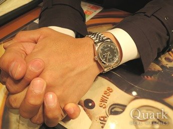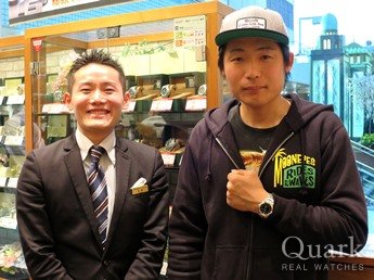 O様 本日はお足元が悪い中、横浜店にご来店ならびにご購入頂きまして、誠にありがとうございました。最初にご試着なさったダイヤ入りもお似合いでしたが、実用性を考えるとこのローマ数字で間違いなかったと思います。OFFの日に着ける事を考えると、ローマ数字はとても実用的かと思いますし、もちろん似合っておりました。ご家族の皆様にも気に入って頂いて、私もとても嬉しいです。特に娘さまのコメントは、まるで店員さんのようで驚きました!スカウトしたいくらいです(笑)本当に素敵なご家族ですね!また皆様にお会い出来る日を楽しみにしております。次はブレス洗浄でお待ちしておりますね。今後とも長いお付き合いの程、宜しくお願い致します。 クォーク横浜店 長本
