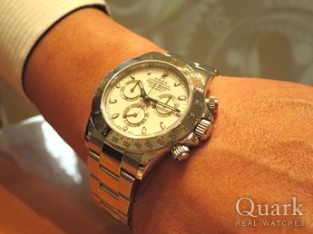数年前から、デイトナを検討していました。 以前は、エクスプローラーII Ref.16570 を使っていましたが、デイトナの方が重みがあっていい感じです。 しっくりきています。 クォーク横浜店は、雰囲気も良いしお洒落で気に入りました。