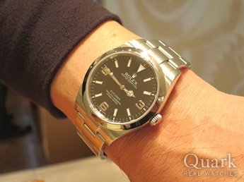 他ブランドの時計と悩みましたが、ロレックスにすることにしました。 正規店で探していましたが、Ref.214270の在庫が無く、HPでクォークさんを見つけたので来てみました。 店舗内は狭く、入りづらい印象がありましたが、店員さんと話してみると、気軽に購入を考える事が出来ました。