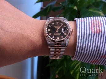 新型のデイトジャスト II(Ref.116300)も 検討していましたが、ベゼルがホワイトゴールド の方が高級感があり、文字盤もスッキリとした ブラックのバーインデックスに決めました!!