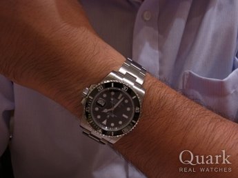 GMT-MASTER Ⅱとも悩みましたが、ロレックスといえばサブマリーナだと思い購入を検討してました。 30代半ばでそろそろいい時計が欲しいと思い、クォークに来店しました。 店員さんの対応がよかったところも、購入の決めてとなりました。