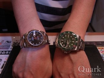防水性能に優れたダイバーズ時計を検討しておりました。 サブマリーナのブラックとグリーンで悩みましたが、他人とかぶらないグリーンを選びました。 いつもクォークさんには色々悩まされます(笑)