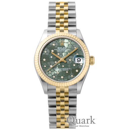 オリーブグリーン ダイヤモンド入りフローラルモチーフ ダイヤル