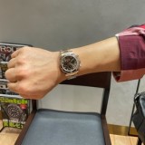 イエローゴールドと悩みましたが、控え目で大人の雰囲気が漂うチョコダイヤルが気に入り、購入を決意しました。中古ということでタイミングも合い、良い御時計と巡り会えました。