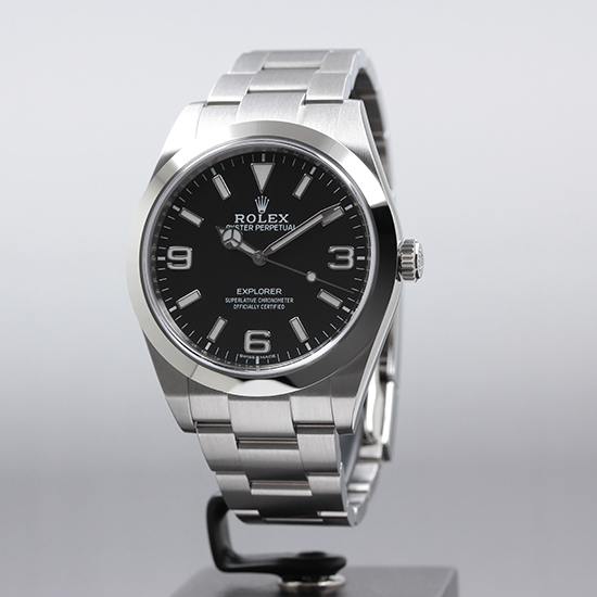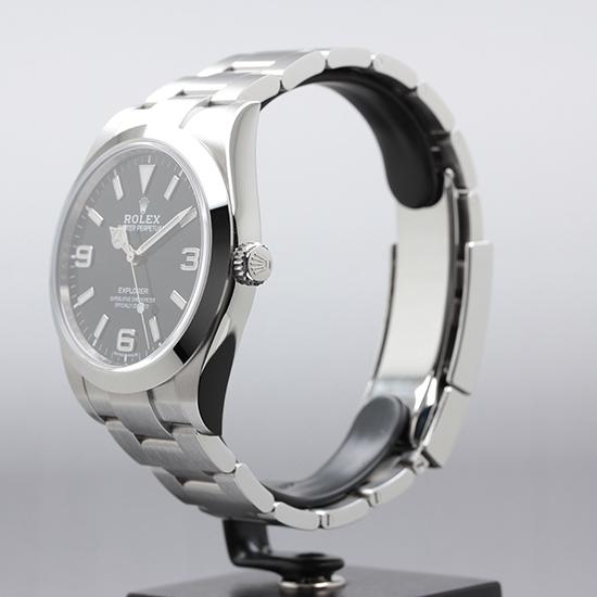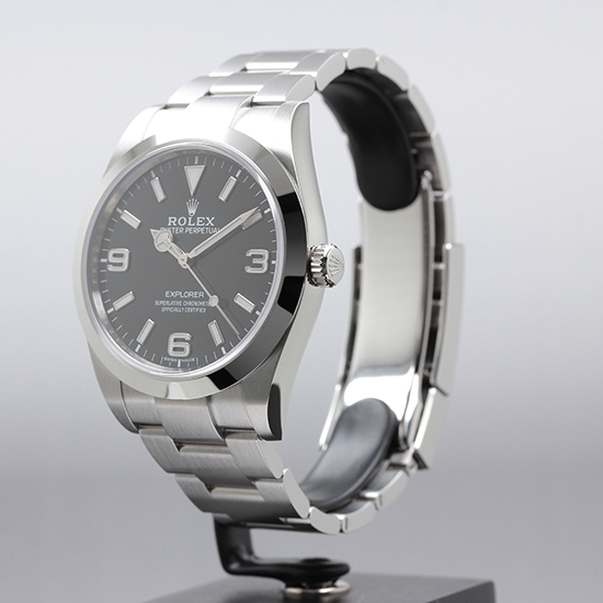 以前は36㎜径のエクスプローラーⅠを使用していましたが、腕のサイズに合わず、39㎜径にしました。とても腕馴染みが良く、気に入っています。改めて一生モノとして大切に使用していきます。