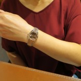 同じピンクゴールドモデルの26ミリタイプで、文字盤の6時位置にダイヤモンドが入るタイプと迷いました。大きさと着用感の良さに惹かれて28ミリタイプに決めました。