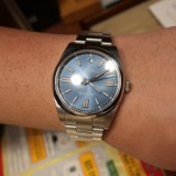 以前からロレックスの購入を検討しており、初めてのロレックスは入門編としてベストなオイスターパーペチュアルと決めていました。色はブライトブルーが1番好きなので在庫があって良かったです。