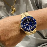 イエローゴールド無垢であること、そしてケースサイズも44ミリと大きいこと、この2つの条件を満たしていたのが購入の決め手になりました。最新型なのでまだ着けている人が少ないのも良いですね。