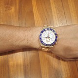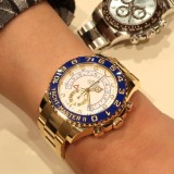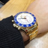 40代になり、徐々にイエローゴールドの魅力に惹かれました。存在感のあるヨットマスターⅡのデザインも気に入っています。