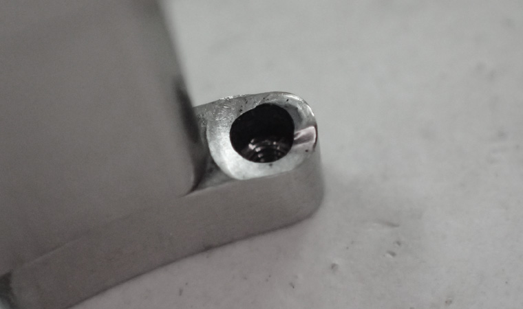 該当部分のパーツを外して内側から見た写真になります。歪な形状になっていることが分かります。