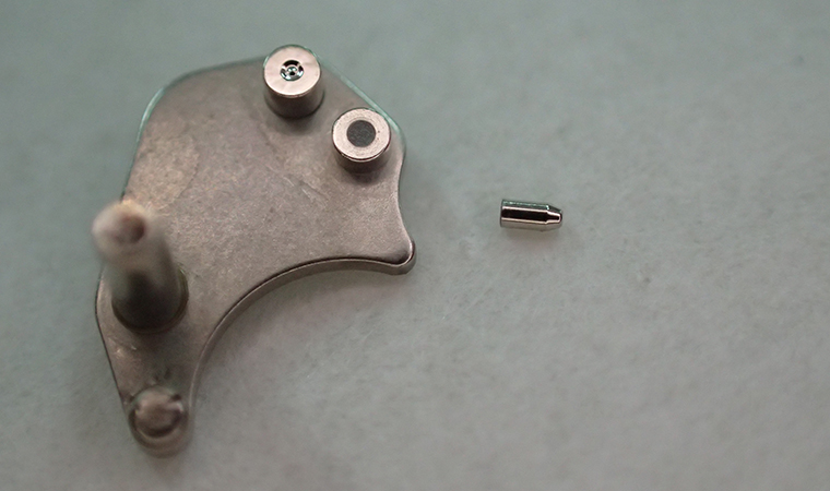 テンプの動きを解除する際に規制レバーのピンが折れてしまうと、規制レバーがテンプを止めたままの状態になってしまいます。