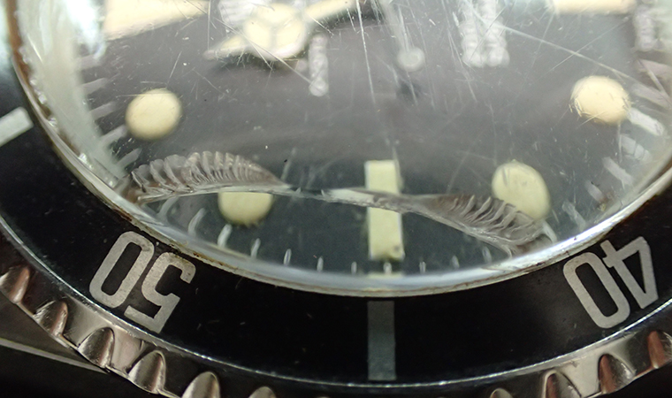 ヴィンテージ・サブマリーナーのプラスチック風防の修理をご紹介します。