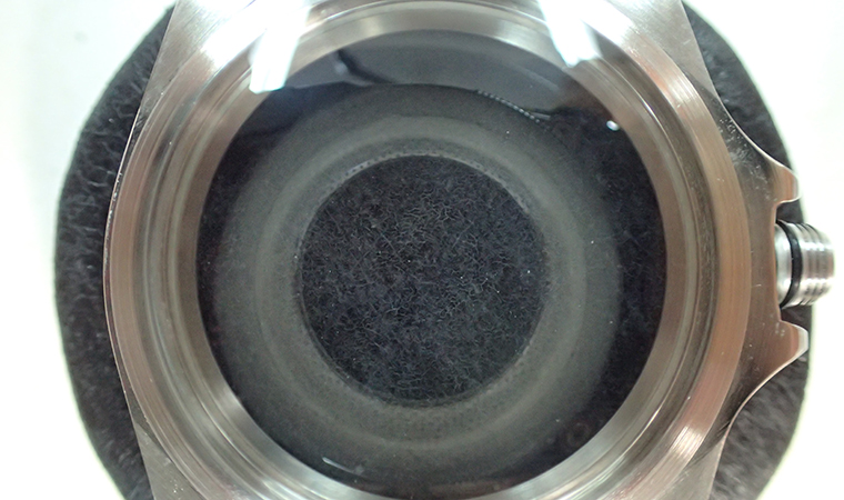 使い込まれたサブマリーナーでしたので、ケースには錆の発生が酷く、かなりの浸食痕が残りました。