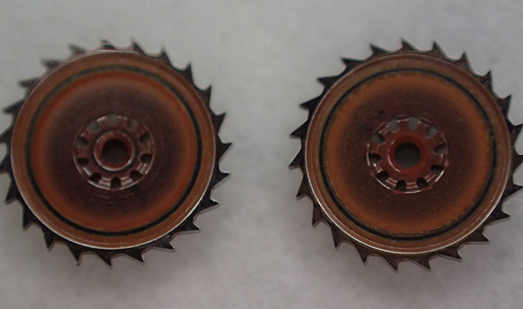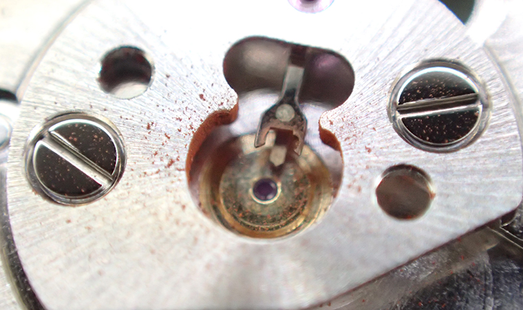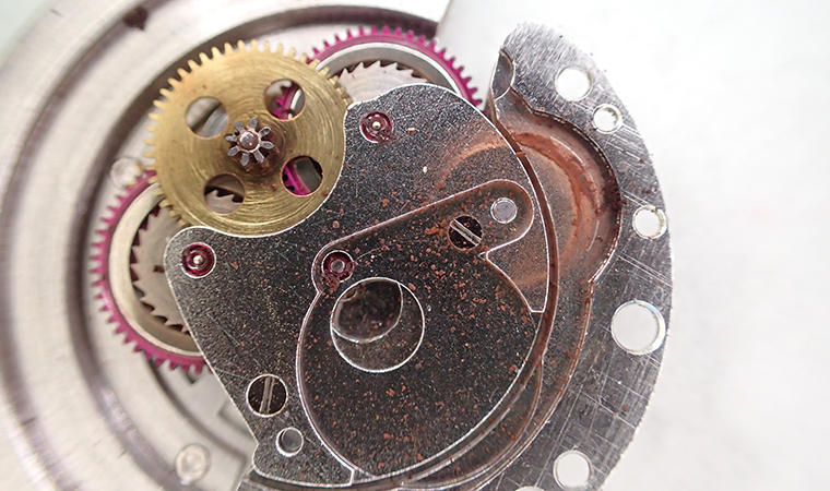 今回ご紹介したパーツは、著しく症状が進んだもので、精度不良や異音、リューズ操作時の異物感などの不具合が顕著に出ていました。