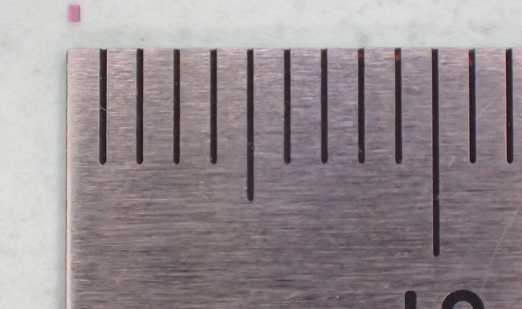 振り石の大きさが分かるよう、スケールと一緒に撮影した写真です。