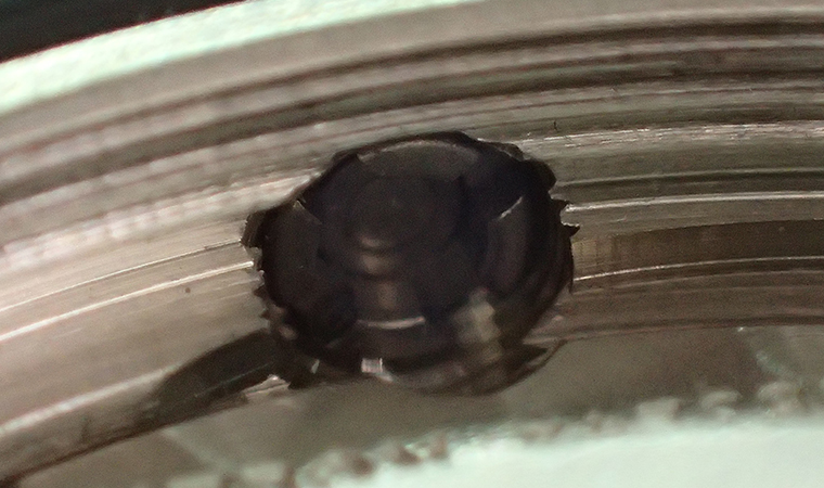 ヘリウム排出バルブを取り外したRef.16600のケース内側の写真です。