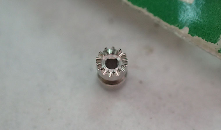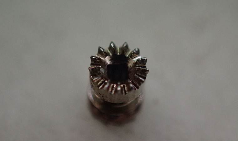 サビによって動きの悪くなった丸穴車を強引に回そうとしたため、ツヅミ車の歯が変形し、動作不良へ繋がっておりました。