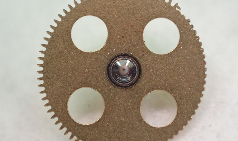本来、先端が見えているはずのリバーシングホイールのホゾが見当たりません。