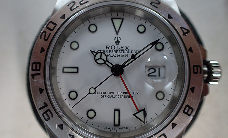 これまでご紹介しましたメンテナンス実績でも、度々登場している2011年に生産終了となったエクスプローラーII(Ref.16570) のホワイトダイヤル。今回、マイナーチェンジ前後のモデルが集まりましたので、メンテナンスと一緒に仕様変更の比較を行ってみました。