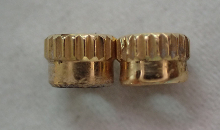 正常な状態のプッシャーと比べてみると、破損の程度がわかります。
